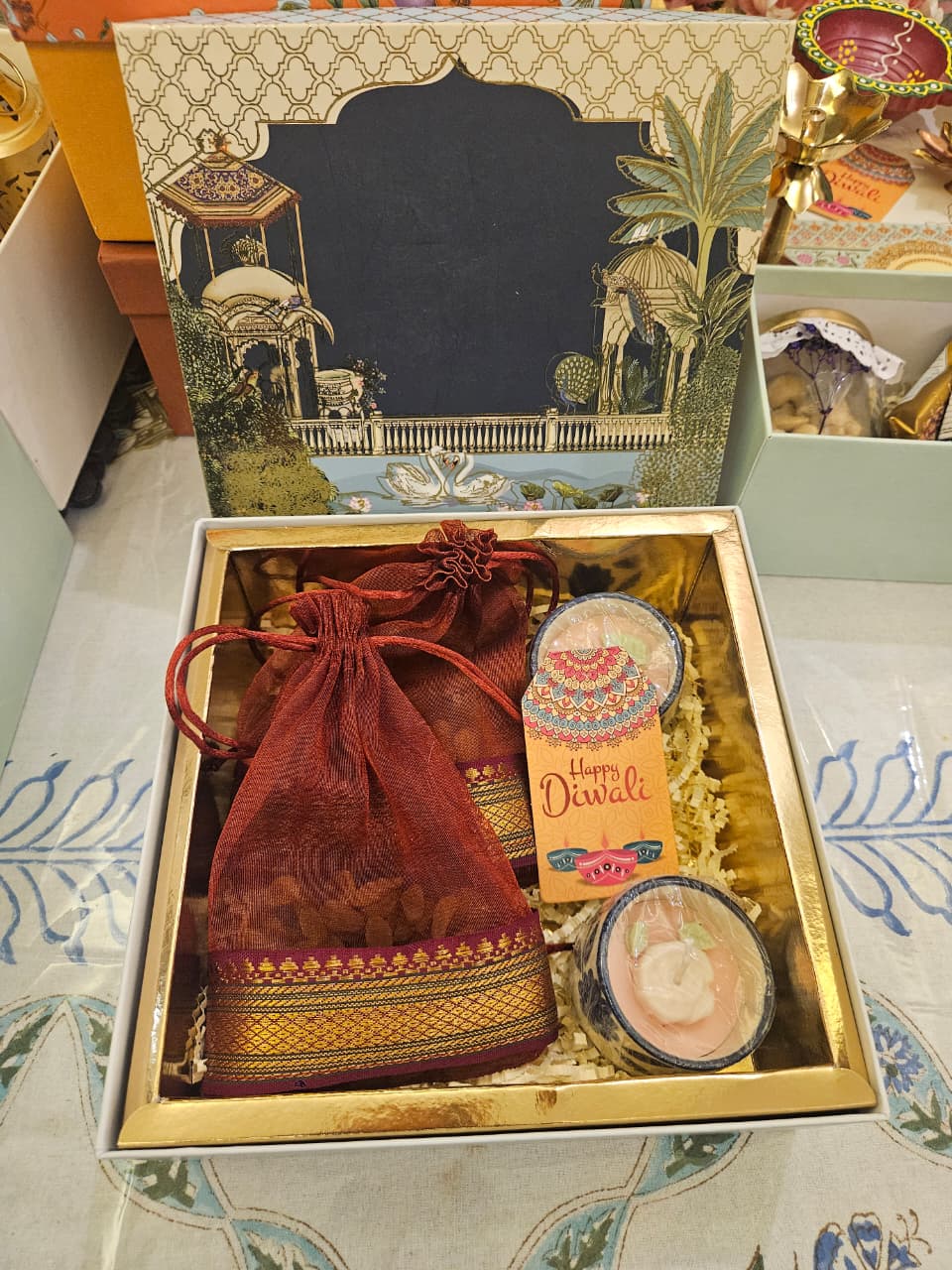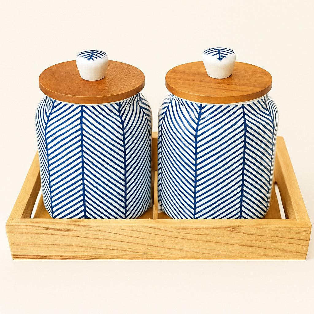Zig Zag Blue Pattern Jar with wooden Tray